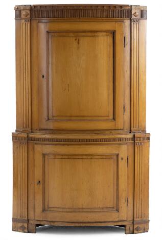 Stort dansk Louis XVI hjørneskab af kirsebærtræ, med buet front. Ca. 1780. H. 190. B. 110. D. 69.