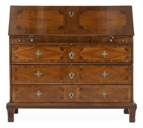 Dansk barokchatol af valnøddetræ. Ca. 1740. Underdel fornyet omkring 1800. H. 110. B. 120. D. 55.