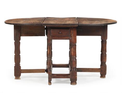 Barok klapbord af massivt egetræ, balusterformede stammer hvorimellem sprosser, 18. årh. H. 74. B. 47/90/140. D. 98.