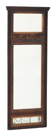 Louis XVI spejl i ramme af delvist forgyldt træ, tredelt spejlfelt. 18. årh.s. slutning. H. 135. B. 50.