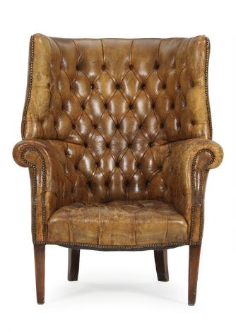 Engelsk Porter's Chair betrukket med dybhæftet og sømbeslået skind. Georg III form. Cirka 1900. H. 114.