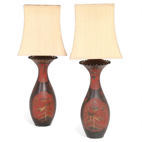 2551/4120LyngbyA pair of Japanese vases, decorated in black, red and gold with birds and flowers. Meiji 1868-1912. H. 62 cm. (2)