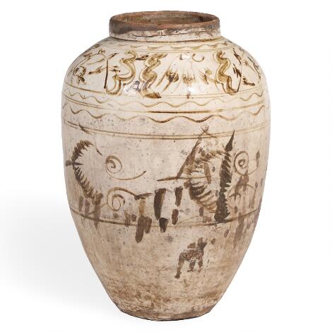 2551/4162LyngbyA Qing dynasty Chinese Cizhou ceramic floor vase, decorated with broen glaze on a light base. H. 68. Diam. 45 cm.