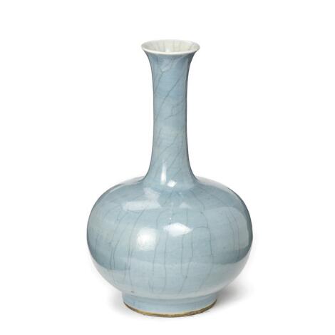 2551/4161LyngbyA Chinese bottle vase decorated with crackled clair-de-lune glaze, 19th century. H. 38 cm.