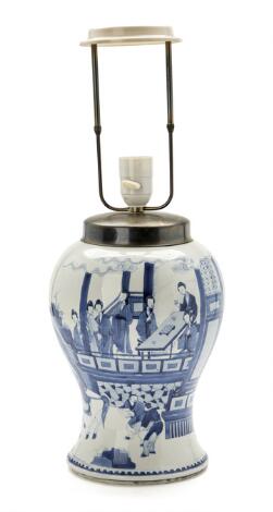 2551/3LyngbyA Chinese blue and white vase, Kangxi 1662-1722 period. Mounted as a lamp. H. excl. the mounts 26 cm.