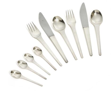 Tias Eckhoff: "Cypress". Sterling silver cutlery. Georg Jensen after 1945. Weight excluding pieces with steel 2275 g. (82)