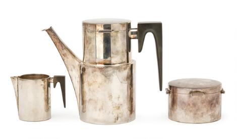 2603/3003LyngbyKarl Gustav Hansen: Mokkaservice af sterlingsølv og poleret horn. Hans Hansen, Kolding, anno 1967. H. 5,4-15,5. (3)