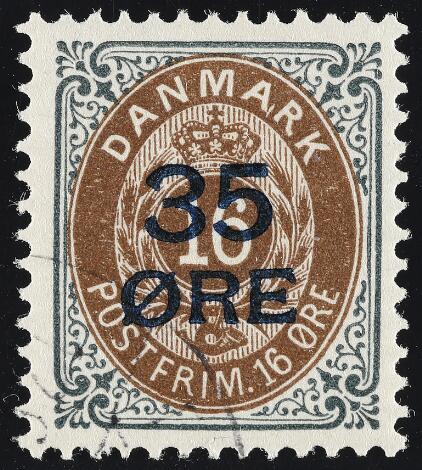1912. 35/16 øre, 31.PRINT. Pos. 22. Perfect centgric, used copy from this rare print. Only 5.000 copies made). AFA 6.500. Cert. Nielsen
