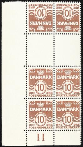 1937. Téte-béche. 10 Øre, Bølgelinie, brun. Med blankt midterfeldt. Postfrisk nedre marginal 8-blok UDEN OPLAGSNUMMER. Oplag kun 26 stk! Meget sjælden.