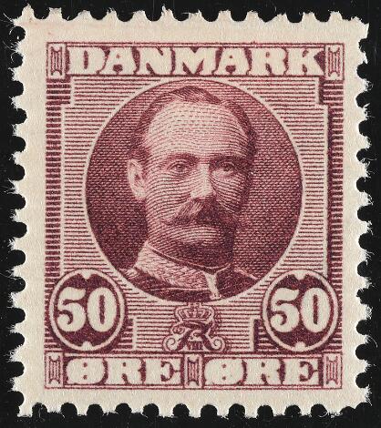 1907. Fr. VIII. 50 øre, red-lilac. LINE-PERFORATED. Fresh and beautiful unused copy. Rare