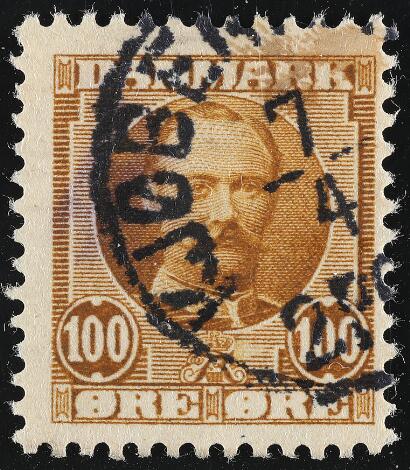1907. Fr.VIII, 100 øre, yellow-brown. Variety "White spot near monogram". Fine used copy. Cert. Nielsen