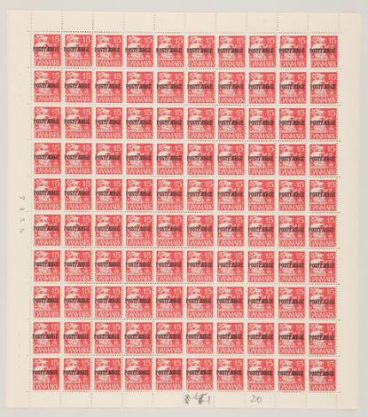 1936. Karavel, 15 øre, red. Type IA. MNH WHOLE SHEET incl. pos. 43 “Line in the dolphin”. Exceedingly rare sheet. Very few copies known.