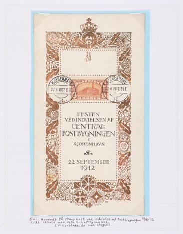 1912. 5 Kr. General post office, brown-red. Vm.III. Off. MENY-CARD. Fin unfolded condition. Rare