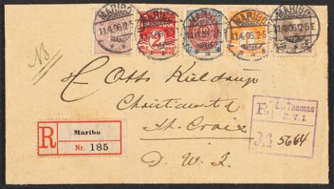 1905. Multifranked rec.-cover sent from MARIBO 11.4.06 to St. Croix, DWI.