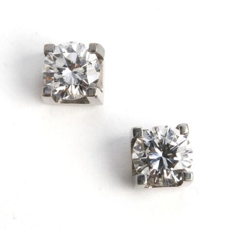 2550/1160LyngbyA pair of diamond solitaire ear studs each set with a brilliant-cut diamond, mounted in 14k white gold. (2)