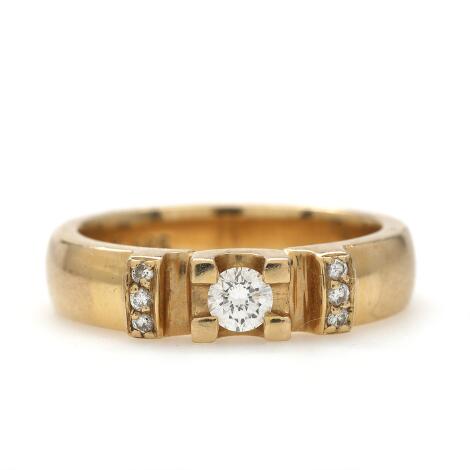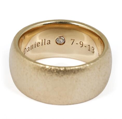 2550/1151LyngbyA wide diamond ring inside set with a brilliant-cut diamond, mounted in 14k satinated gold. Size app. 65.