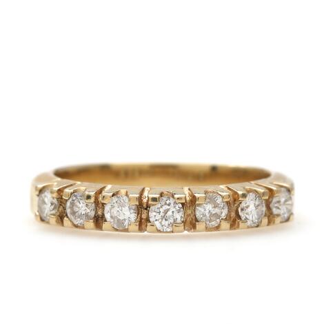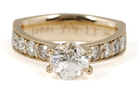 2550/1132LyngbyA diamond ring set with an old-cut diamond flanked by eight brilliant-cut diamonds. Size app. 55-56.
