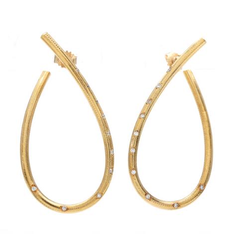 2550/1105AarhusMarianne Dulong: A pair of "Kharisma" diamond earrings each set with diamonds, mounted in 18k gold. L. 4.5 cm. (2)