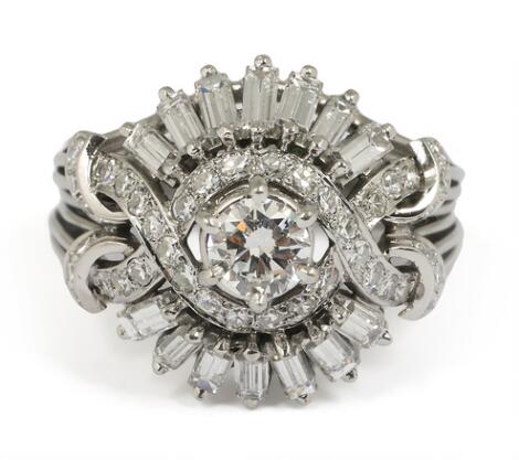 2550/1141LyngbyA diamond ring set with a brilliant-cut diamond encircled by numerous diamonds, mounted in pltinum. Size 52.