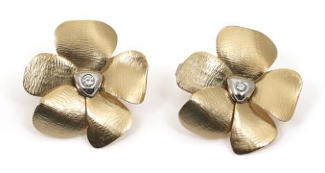 2550/1115LyngbyCharlotte Lynggaard: A pair of "Flower" diamond ear clips, mounted in 18k satinated gold and white gold. (2)