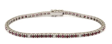 2550/1127LyngbyA ruby and diamond bracelet set with numerous rubies and diamonds, mounted in 18k white gold. L. 18.3 cm.