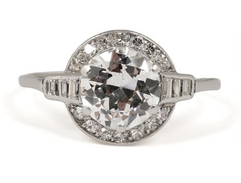 2550/1102LyngbyA diamond ring set with a diamond weighing app. 1.95 ct. encircled by diamonds, mounted in platinum. Size 62.5.