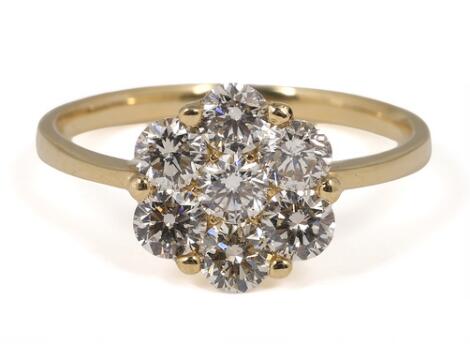 2550/1120AarhusA "Halo" diamond ring set with diamond weighing 1.00 ct encircled by numerous diamonds, mounted in 18k gold. Size 48.