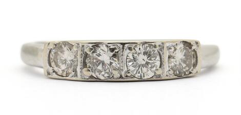 Diamantring af 18 kt. hvidguld prydet med fire brillantslebne diamanter. H-I/SI-P1. Vægt ca. 3,5 g. Str. 58.