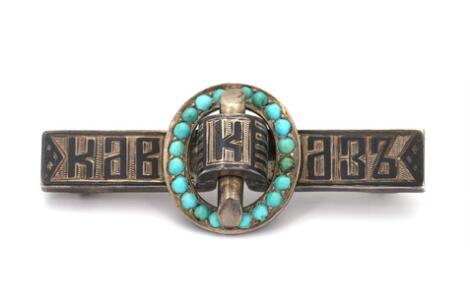 Russisk broche af sølv med niello og turkiser. Alexander Dalliman, Skt. Petersborg. 19. årh.s slutning. L. 5,5 cm.