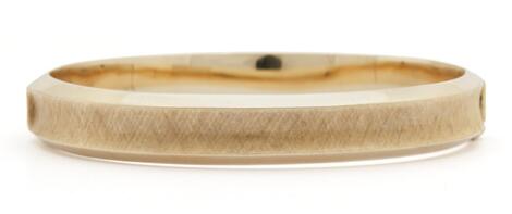 Rund armring af 14 kt. delvis facetteret guld. Vægt ca. 12,5 g. Indre diam. ca. 6,2 cm.