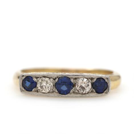 Diamant- og safirring af 18 kt. guld prydet med diamant og safir. Str. 54.