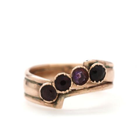 Ametystring af 8 kt. guld prydet med ametyster. Str. 51.