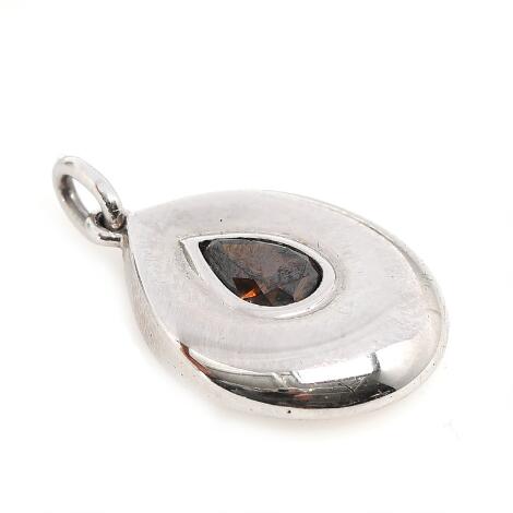 2548/1259AarhusDauf & Pede: Diamantvedhæng af 18 kt. hvidguld prydet med dråbeformet brun diamant på ca. 1.12 ct.