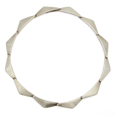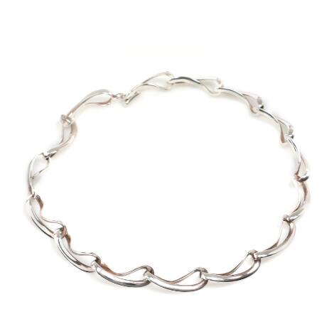 2548/1266LyngbyHans Hansen: Leddelt halskæde af sterlingsølv. Dessin 315. Vægt ca. 32 g. L. 36,5 cm.
