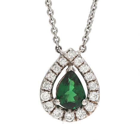 2548/1257AarhusTsavorit- og diamanthalskæde af 18 kt. hvidguld prydet med tsavorit omkranset af diamanter. L. 45 cm.