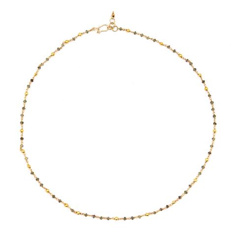 2548/1265LyngbyNatascha Trolle: Alexandrithalskæde af 18 kt. guld prydet med perler af alexandrit og 22 kt. guld. L. 46-47 cm.
