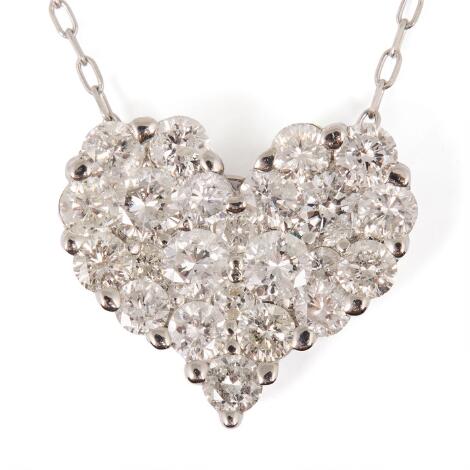 2548/1277LyngbyDiamantvedhæng af platin i form af hjerte prydet med talrige brillantslebne diamanter. Med kæde af platin. (2)