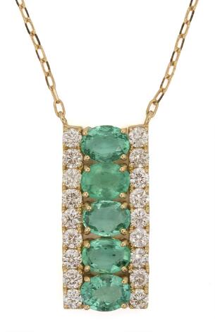 2548/1278LyngbySmaragdhalskæde af 18 kt. guld prydet med fem ovalslebne smaragder og brillantslebne diamanter. L. 42,5 cm.