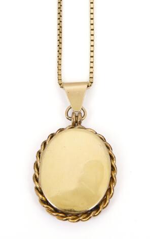2548/1273LyngbyVedhæng af 14 kt. forgyldt metal i form af fotogemme. Med kæde af 14 kt. guld. L. 50,5 cm. (2)