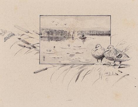 2549/325O. A. Hermansen: "Søparti med ænder". Signeret monogram. Vandfarve og tusch på kraftigt papir. Lysmål 7,5 x 9.