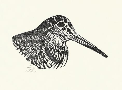2549/103Johannes Larsen: “Forarbejde til Skovsneppen”. 1926. Sign. monogram med blyant. Træsnit. Bladstørrelse 28×20. Uindrammet.