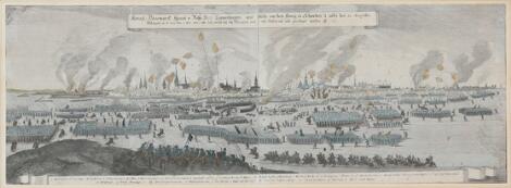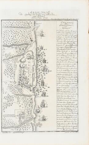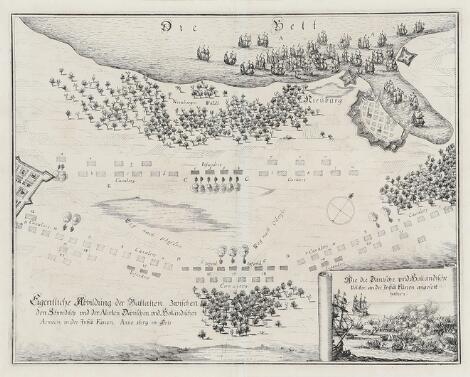 2549/8041Caspar Merian: "Eigentliche Abbildung der Battailen (...)". 1693. Kobberstik. Lysmål 32 x 39,5 cm.