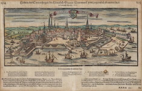 2549/231Matthäus Merian II: “Abbildung der Stadt Copenhagen [...]". Kobberstik. Bladstørrelse 34 x 39. Uindrammet.
