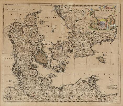 2550/191Frederik de Wit: "Dania Regnum". 1680. Håndkoloreret kobberstik. Bladstørrelse 54 x 64 cm. Uindrammet.