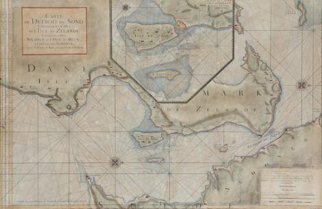 2549/8049Nicolas Berey, Alexis Hubert Jaillot: "Carte de Detroit du Sond Contenant (...)". 1693. Håndkoloreret kobberstik. Lysmål 57 x 88 cm.