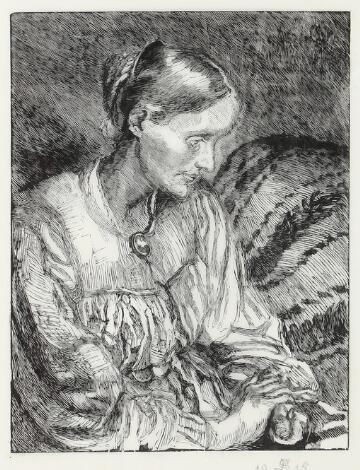 2549/152Johan Thomas Lundbye: Kunstnerens bedstefader, siddende ved et vindue. Tryksign. Radering. Lysmål 25 x 22.