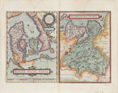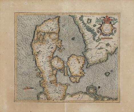 2549/8003Abraham Ortelius: "Daniae Regni Typvs". 1598. Handcoloured engraving. Sheet size 45 x 56 cm. Unframed.