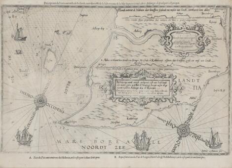 2549/8013Lucas Jansz Waghenaer: "Situs Iuttiæ vna cum Ostijs Aguarum Altitudinibus (...)". 1605. Engraving. Sheet size 43 x 55 cm.