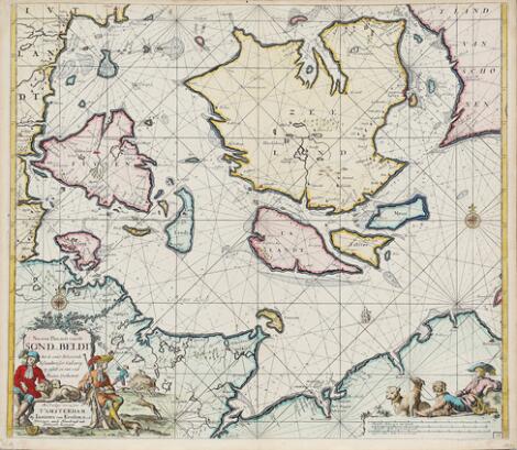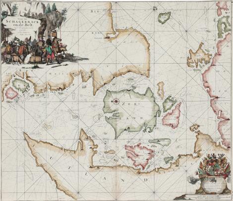 2549/8006Gerard van Keulen: "Nieuwe Paskaart van de Sond ende Beldt". 1715. Handcoloured engraving. Sheet size 53 x 61 cm. Unframed.