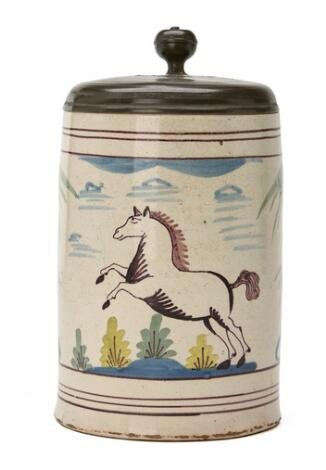 2546/229Hannovers Münden krus af fajance med gæk og låg af tin. 18. årh. H. 20,5 cm.